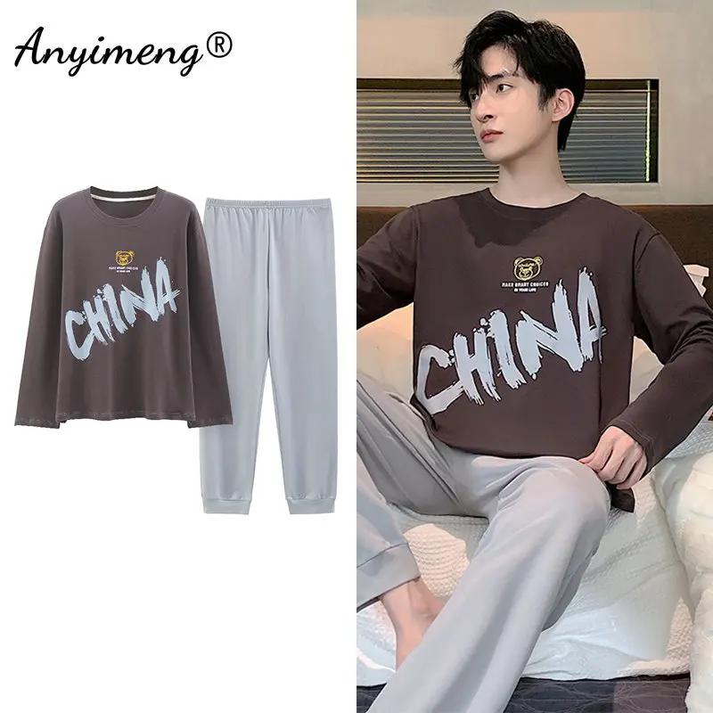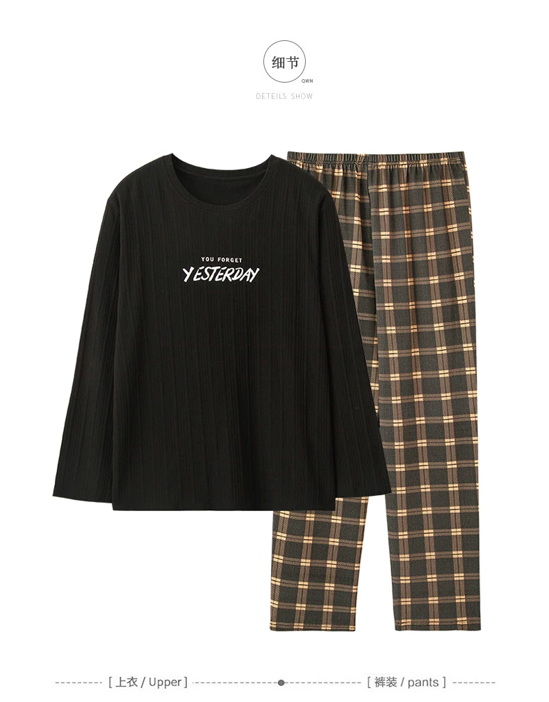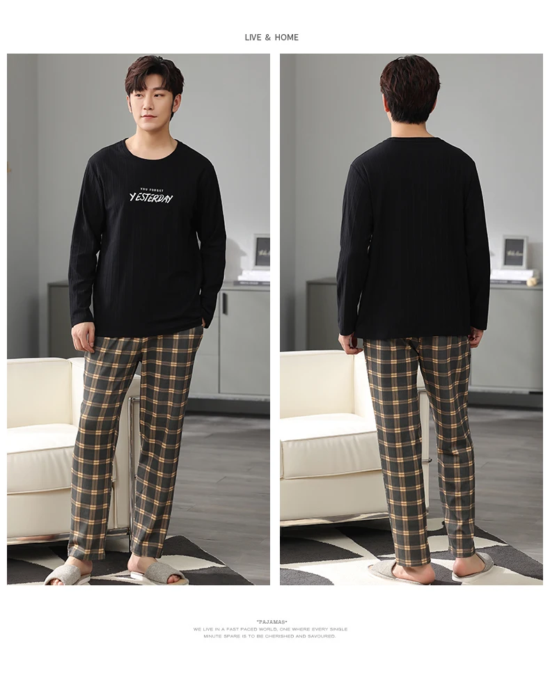 Big Size Men Pajamas Autumn Winter New Chic Gentleman Pjs Fashion Mens Casual Sleepwear Plaid Pants Cotton Pijama Set for Boy