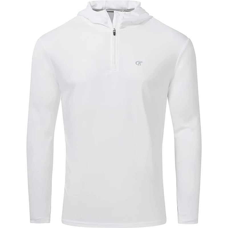 Hooded design preventing your neck form sunburn in the sun. Thumb holes keep the sleeves in place, and give extra back of hand protection