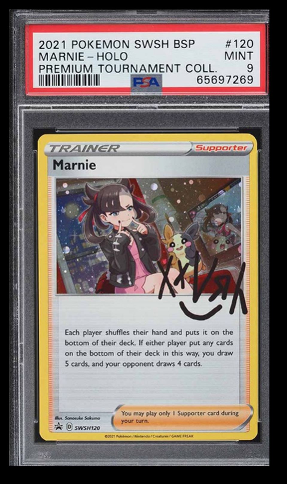 | 2021 Pokemon SWSH BSP Premium Tournament Coll. Marnie PSA 9 English #120 Holo |