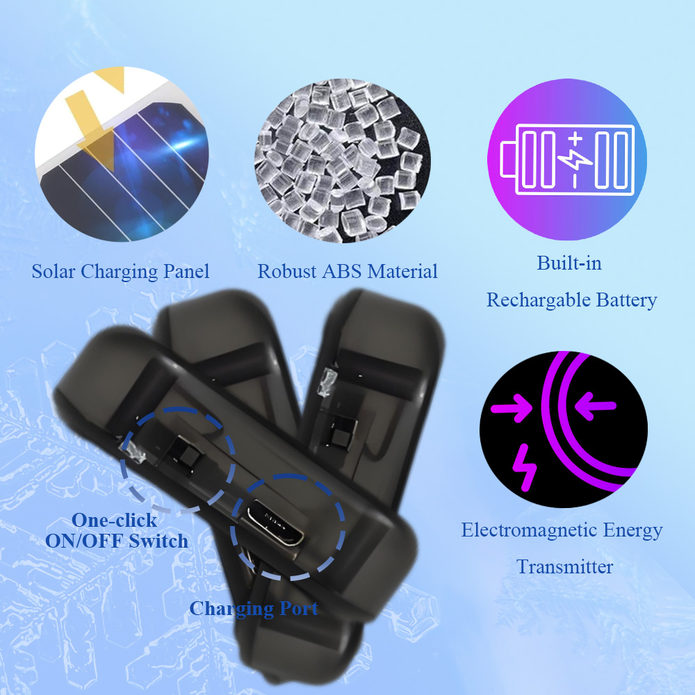 Dual Power Mode Design: Equipped with an internal rechargeable power system and a solar power recharge option, allowing continuous function even in low-power conditions or cloudy weather
