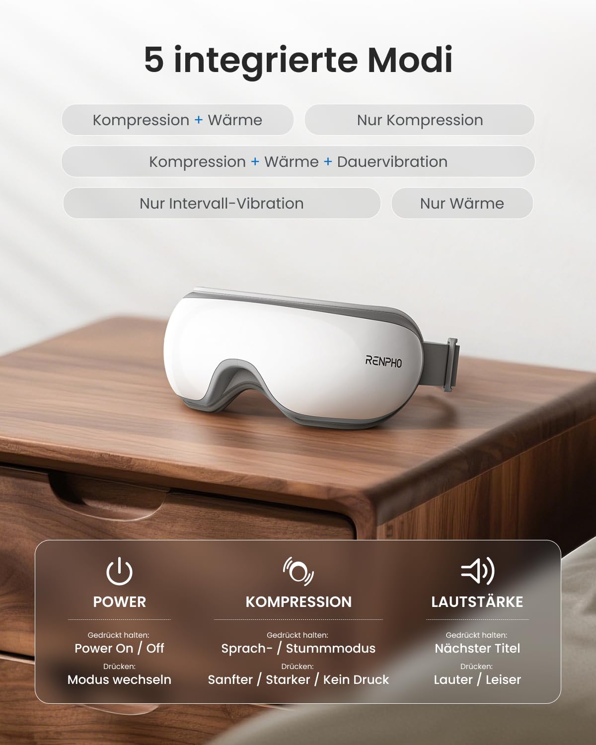 - 【Eyeris1 Eye Massager mit wärme & Reduzierung der Augenbelastung】Die Renpho Augenmassagegerät verwendet Triggerpunkte, oszillierenden Druck und rhythmische Perkussionsmassage. Eingebaute Heizkissen sorgen für eine angenehme Temperatur zwischen 40℃ und 45℃, besser zum Entspannen der Augenbelastung, Augenschwellungen, trockenen Augen usw.