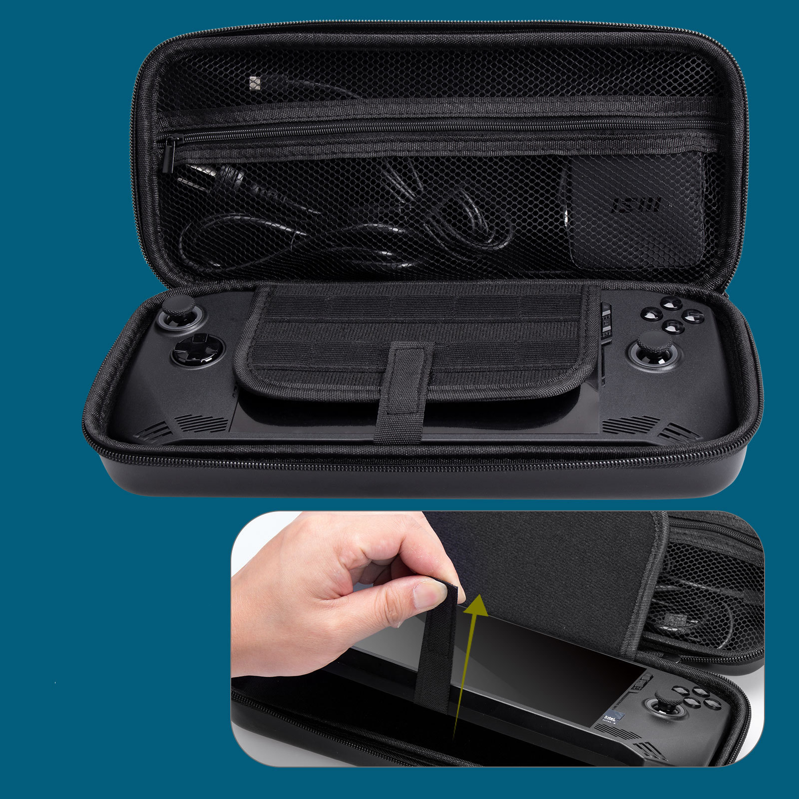 2.ORGANISED STORAGE: The interior of the carrying case has a dedicated compartment to safely store the game console and prevent it from being crushed. There is also a mesh pocket for storing accessories such as data cables, chargers, SD cards, etc. to keep everything organised.