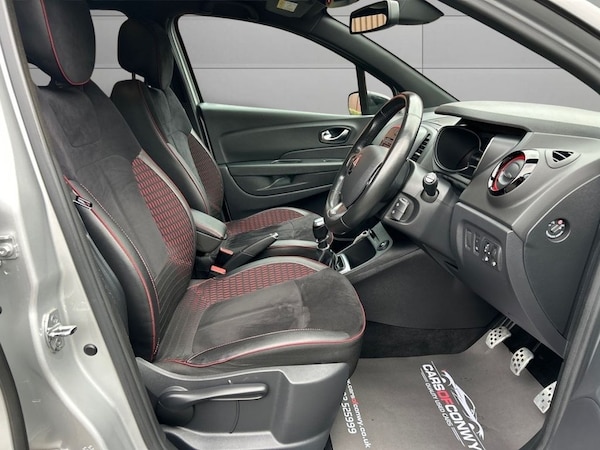 .Alcantara - Grey with Red Stitching, 12V Power Socket, 17in Alloy Wheels - Filante, 3x - Rear Headrests, ABS with EBA - Emergency Brake Assist, Airbag - De-Activation for Front Passenger, Armrest - Front Centre, Automatic Climate Control with One Touch Demist Function, Automatic Folding Door Mirrors, Automatic Headlights and Rain Sensitive Front Wipers, Chrome Exterior Touch Pack, Closable Storage on Top of Dashboard, Cruise Control with Speed Limiter, Dark Harmony - Dashboard and Side Panels, Dark Roof Lining with Black A-B-C Pillars, Deadlocking, Door Handles - Body Coloured - Front, Driver and Passenger Front - Side Airbags, Driver and Passenger Lateral Head-Thorax Airbag, EBD - Electronic Brake Distribution, ECO Mode Function, ESC - Electronic Stability Control, Electric Windows - Front and Rear, Extra Tinted Windows - Rear and Tailgate, Front Door Storage Compartment, Front and Rear Daytime Running Lights - LED, Front and Rear Seatbelt Unfastened Warning Sound, Full LED Headlamps, HSA - Hill Start Assist, Hands Free Access with Key Card and Start Button, Heating System with Pollen Filter, ISOFIX Child Seat Fixing Points on Front Passenger and Rear Outermost Seats, Interior Touch Pack - Red, Kick Plates - Side, LED Front Fog Lights with Cornering Lights, Lightly Tinted Windows, MediaNav Multimedia System, New Generation Height Adjustable SRP Front Headrests, Premium Pack, RAID - Renault Anti Intruder Device - Automatic Door Locking, Rear Door Storage Compartment, Rear Parking Sensors, Rear seats - 40-60 Split Folding Rear Bench, Remote Central Locking with Thatcham Approved Immobiliser - Thatcham Cat 2, Reversible Boot Floor, Safety Lock - Rear Doors, Seats - Drivers Height Adjustment, Skid Plates - Front and Rear - Grey, Split-Level Boot Floor, Sports Pedals, Steering Wheel - Height and Reach Adjustable, Steering Wheel - Synthetic Leather, Storage - Front Glovebox, Storage Between Front Seats, Storage Space near Handbrake, Trip Computer, Tyre Inflation Kit, Tyre Pressure Warning Light, USB Socket and Jack, Variable Power Assisted Steering - Electrical, Mercury with Metallic Diamond Black Roof