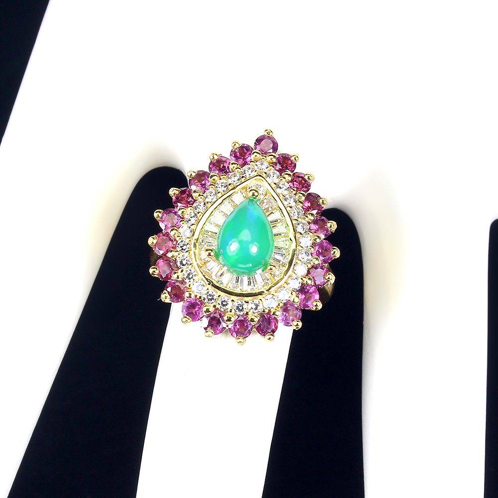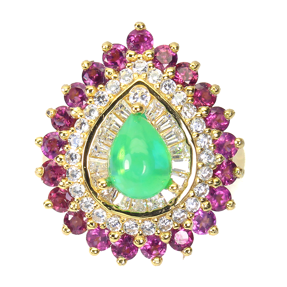 Clarity Enhanced Green Opal 8x6mm Garnet Simulated Cz 925 Sterling Silver Ring 7