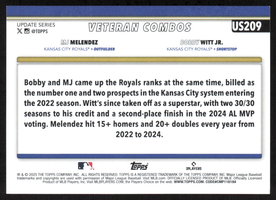 | 2025 Topps Update Series Base Veteran Combos Kansas City Royals #US209 | ||||||||||||||||||