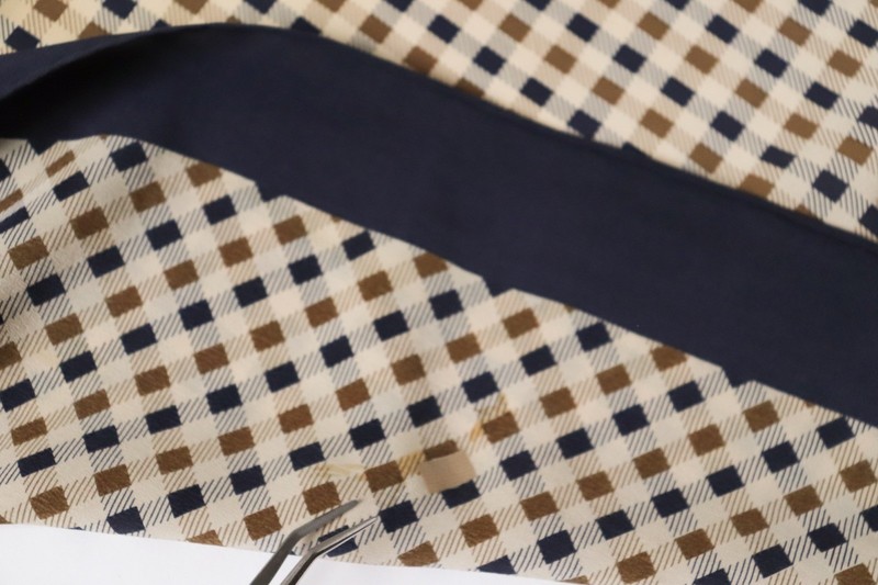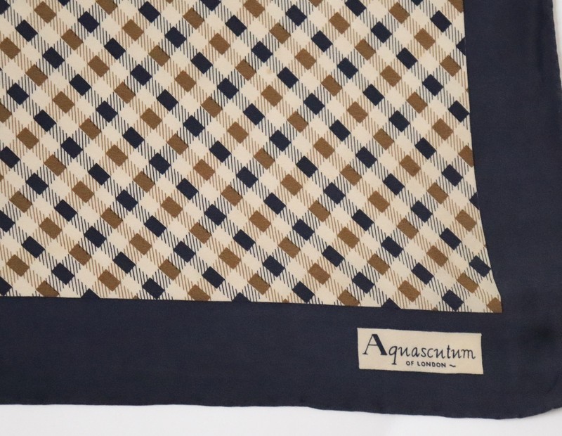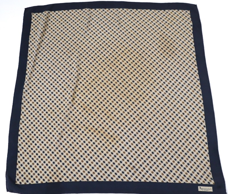 Aquascum classic dark blue / beige checked vintage silk twill scarf - See full details as scarf has flaws