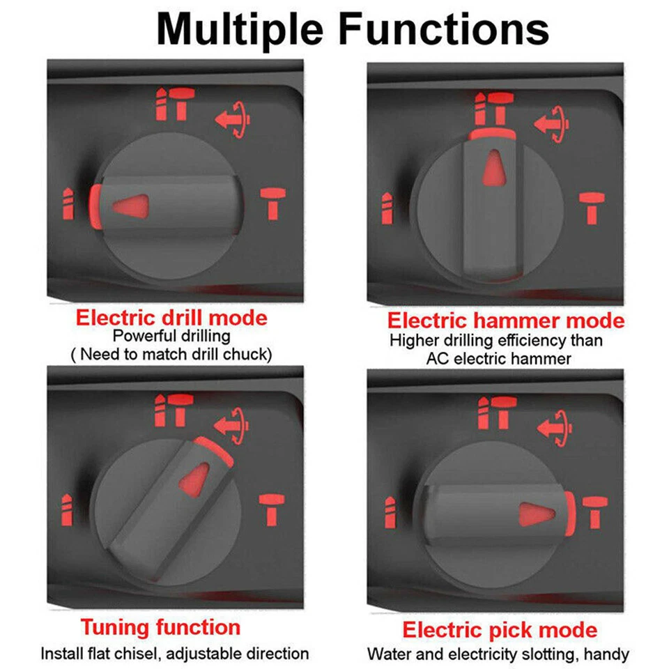 4 Multifunktion: 1 Elektrohammer, 2 Elektropickel, 3 Elektrobohrer, 4 Rückwärtsgang