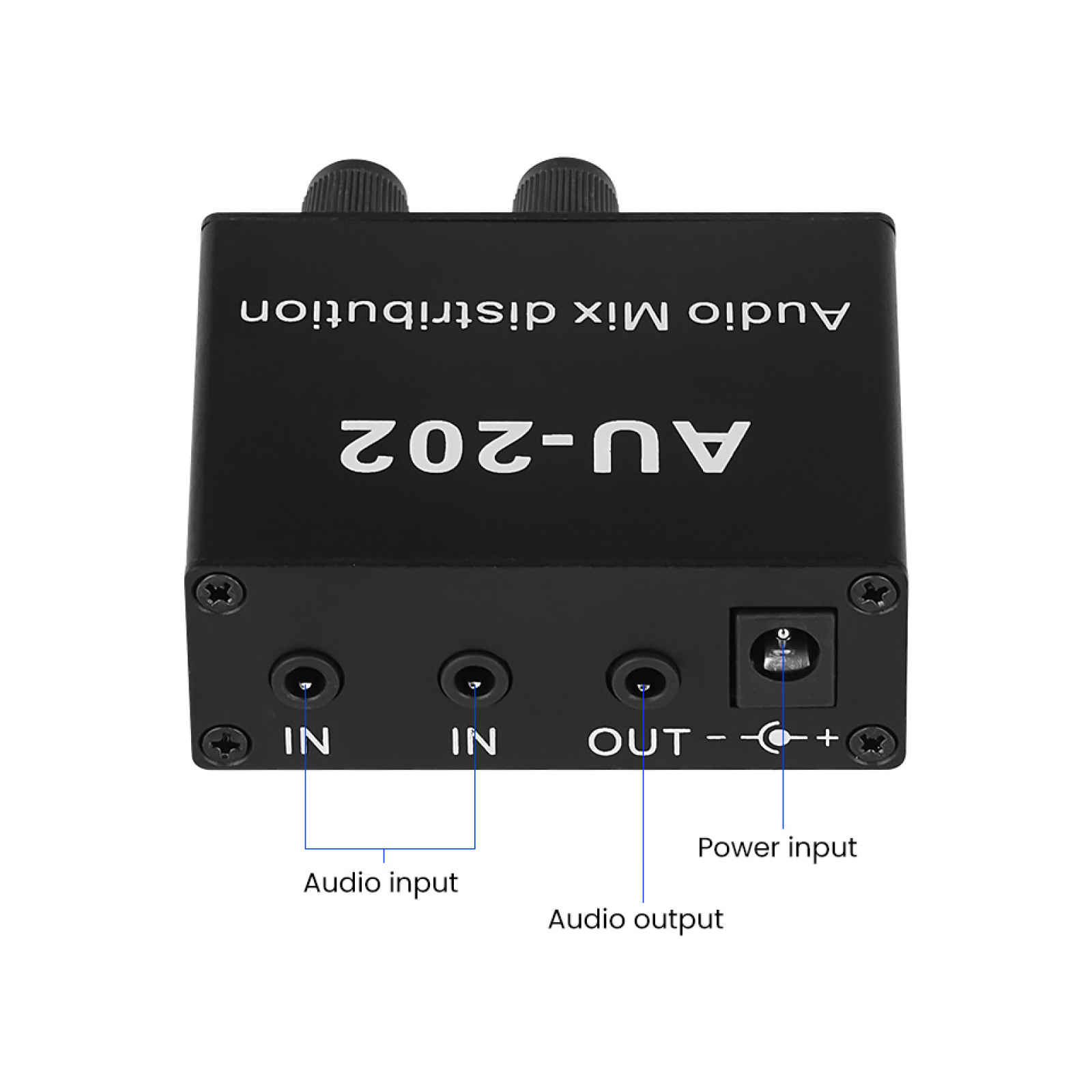 All sockets is stereo 3.5mm, input one way, both 2 ways output is same. And input two at the same time, then