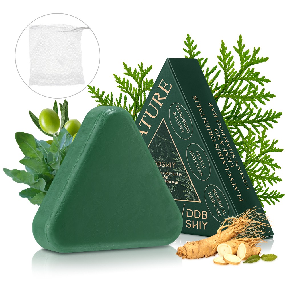 Natural Seven Green Shampoo Bar Platycladus Grass Triangle Shampoo Soap with Polygonum for Thickening & Darkening Hair Nature Triangle Handmade Shampoo Soap Refreshing Nourishing Hair