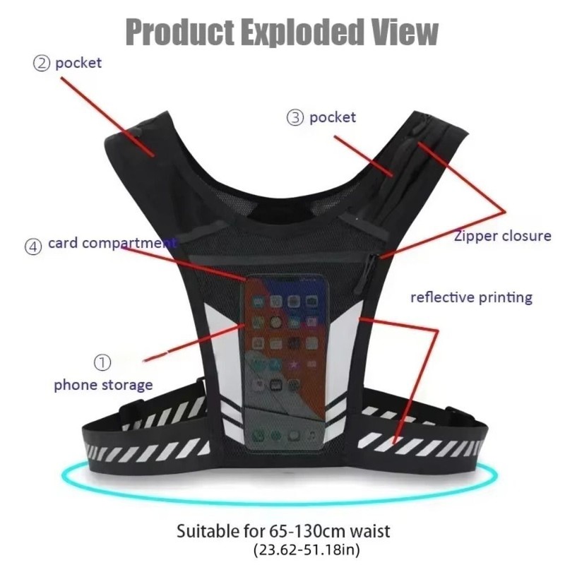 The Running Vest is breathable and comfortable. It has a large capacity to hold a 1000ml water bottle, 7.5-inch mobile phone, keys, and other valuables. The Running Backpack Vest is designed with reflective strips on the front and back, clear cleaning, high-brightness display, making it safer for you to run and ride at night. Great for night running, biking, dog walking, jogging, etc.