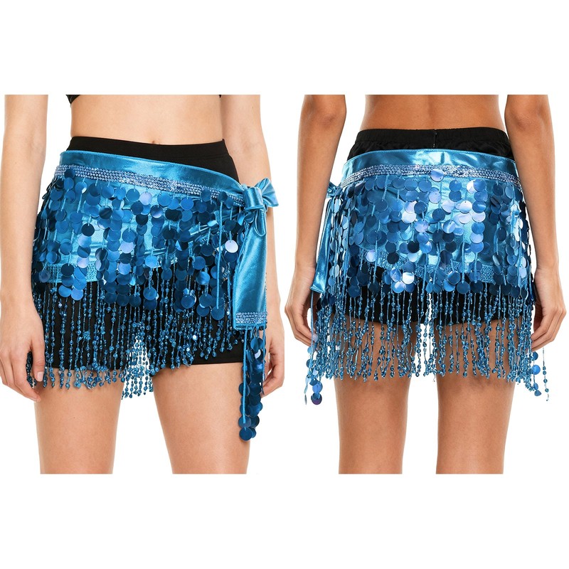 Crafted from a blend of polyester and sequins, this hip scarf is both durable and eye-catching, offering a comfortable and long-lasting wear.
