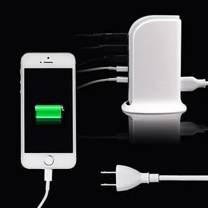 It delivers 5 USB ports, sits on your desktop, and plugs directly into a power outlet. The Smart Power Tower has a built-in hi-tech chip that determines how much power is needed when you plug in your gadget or Smartphone and delivers that many watts of power by creating an exclusive delivery tunnel that will speedily charge your device.