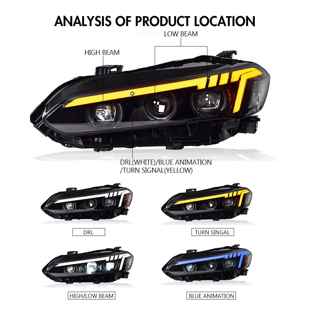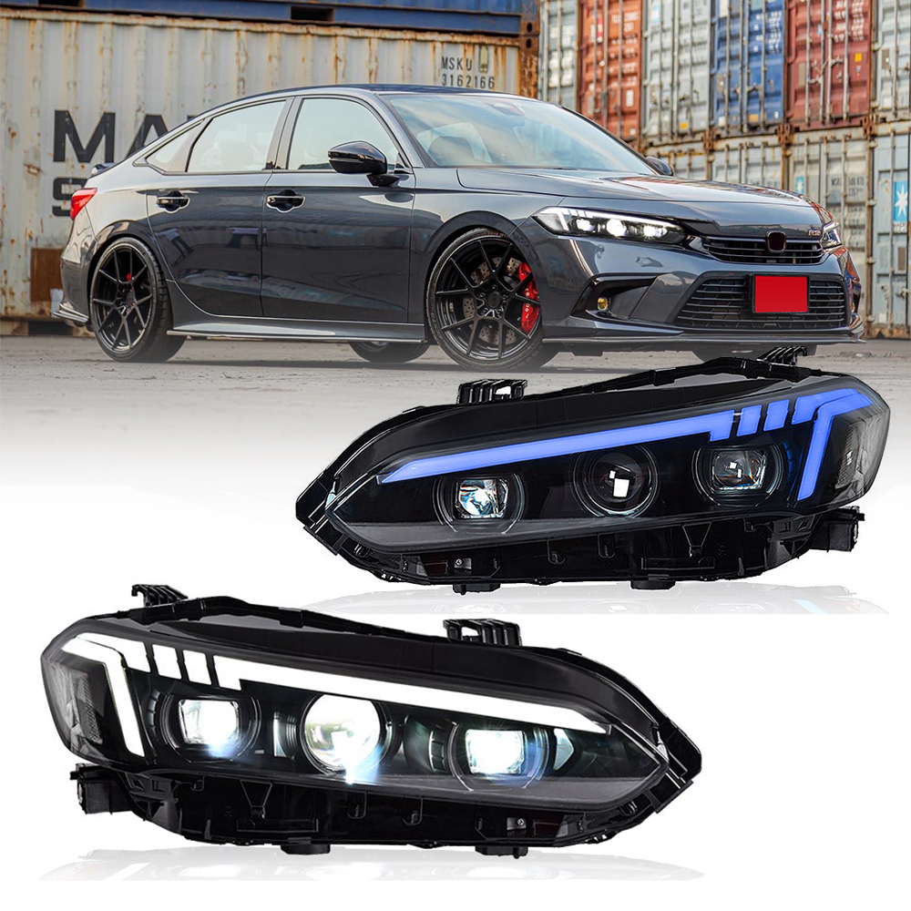 Full LED DRL Headlights For 2022-2025 11th Gen Honda Civic Sedan 4-Door Front Lamp