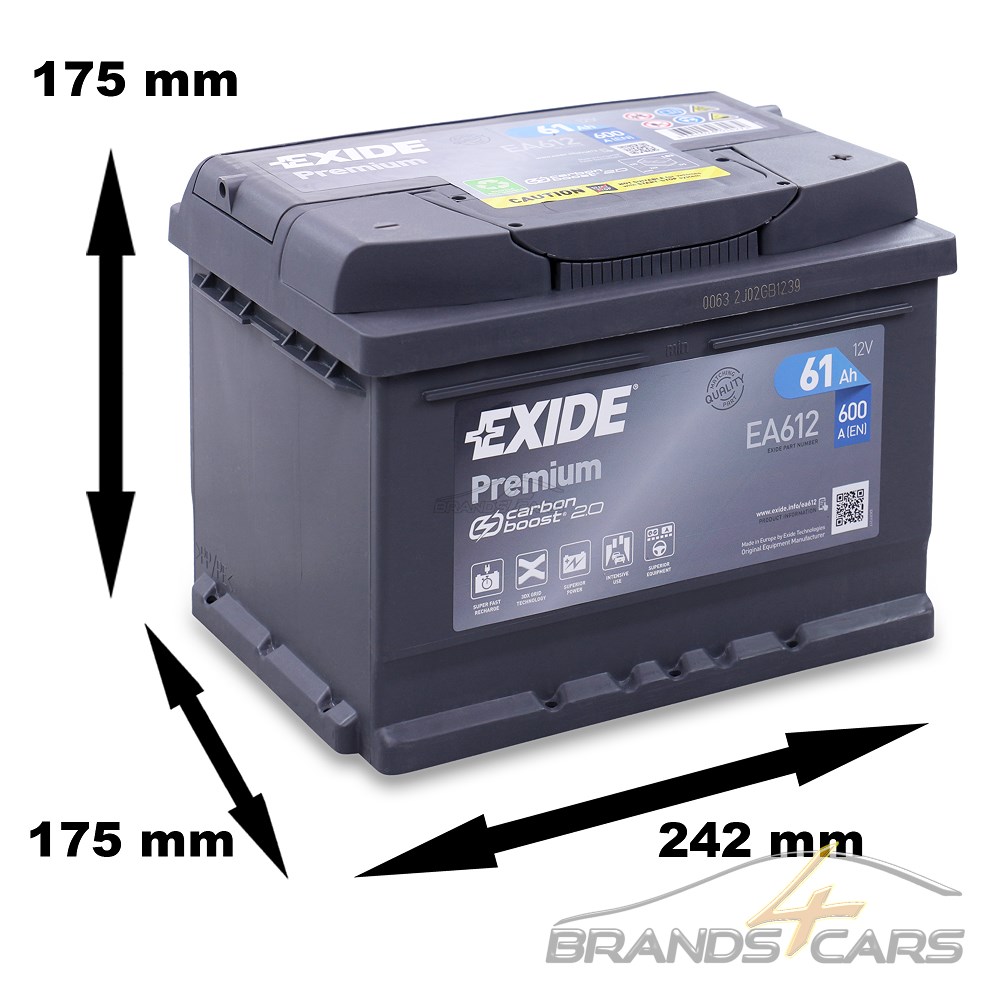 EXIDE EA612 Premium Carbon Boost 61Ah 600A
