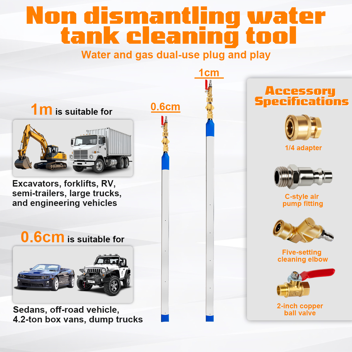 Universal Applicability Across Multiple Vehicle Models: With a slim profile of just 5mm, our car water tank cleaning wand effortlessly reaches radiators of various vehicles, including trucks, cars, excavators, harvesters, and more. Its multifunctionality extends to car exterior and chassis cleaning, making it an indispensable tool for diverse automotive needs