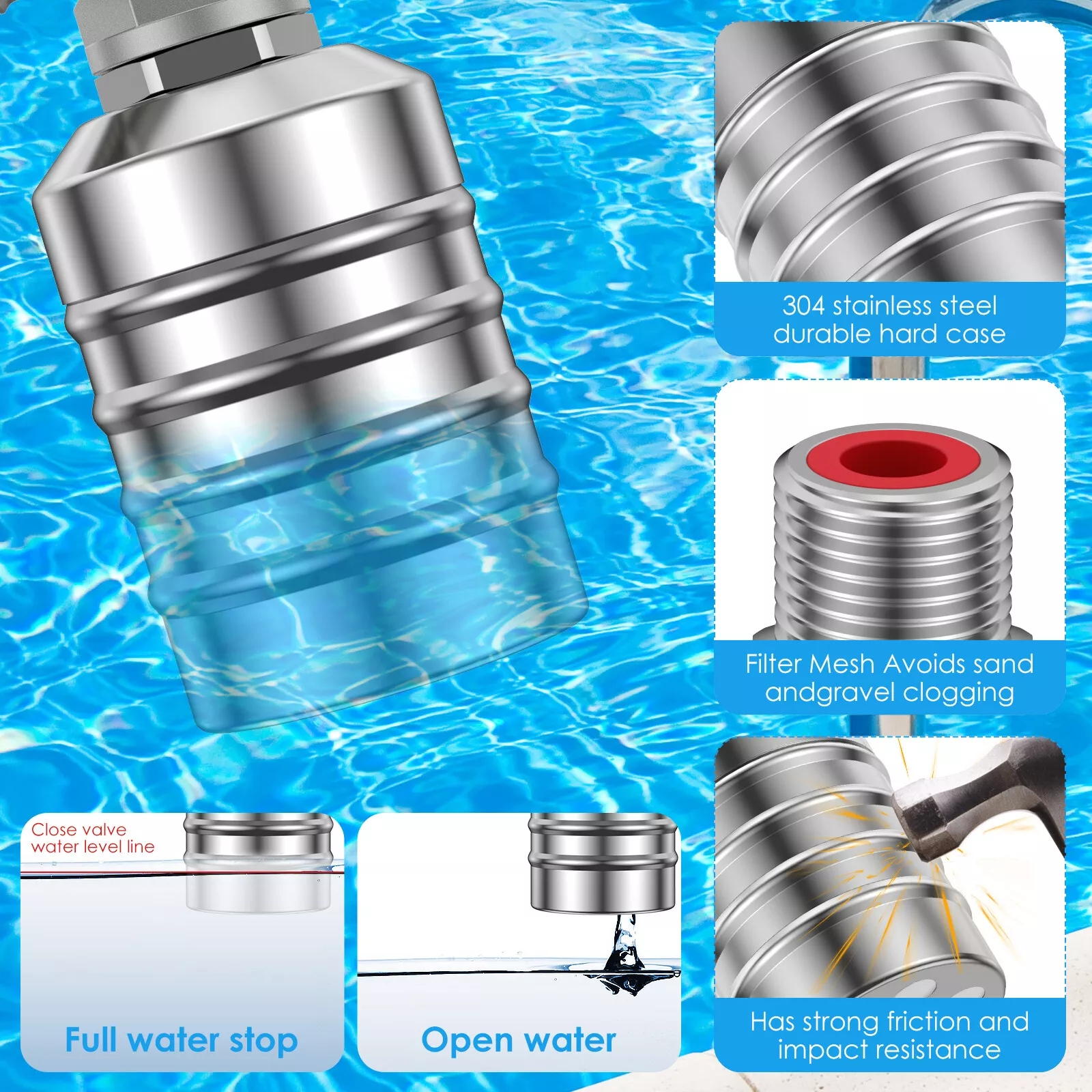 Which is used at the water inlet to avoid sand and stones from clogging the float. This product is widely used for garden waterfall, garden fountain, swimming pool, and more.