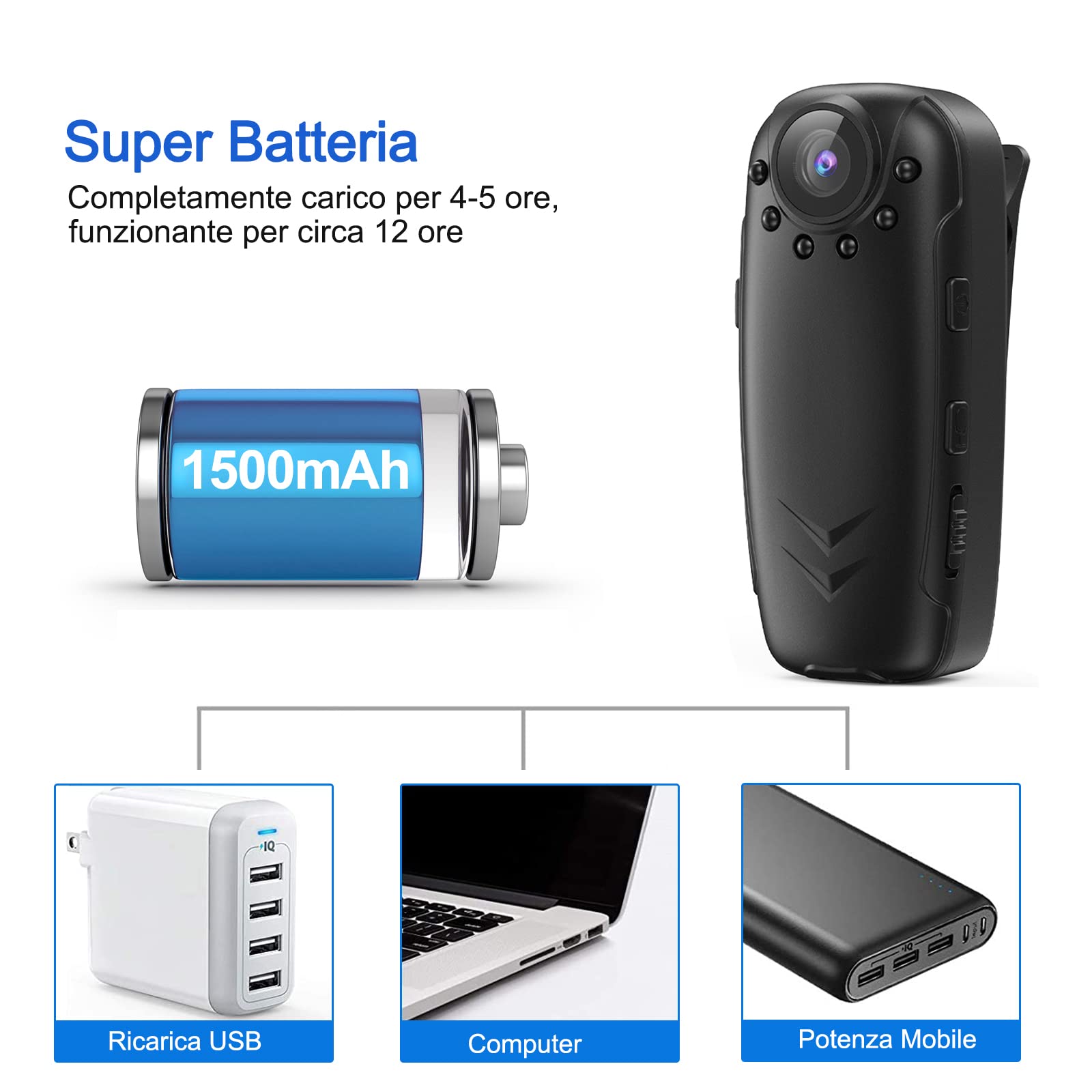【Rilevamento del Movimento e Registrazione Ciclica】Sensore di movimento integrato, che avvia automaticamente la registrazione non appena viene rilevato un movimento. Dopo l'accensione, il dispositivo riconosce il movimento degli oggetti e inizia a registrare. La funzione di registrazione ciclica garantisce un monitoraggio continuo, senza perdere nemmeno un secondo dei momenti cruciali.
