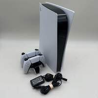 Sony PlayStation 5 Disc Edition PS5 825GB White Console Gaming System CFI-1000A Items included in this sale: Sony PlayStation 5 Disc Edition PS5 825GB White Console Gaming System CFI-1000A2x ControllerPower CableDock *Please note, if it is not listed it is not included - such as power cables or other accessories. Specifications: Collection Sony Gaming Sub-Collection Sony Consoles Brand Sony Model PlayStation 5 Disc Edition PS5 Platform Sony PlayStation 5 MPN CFI-1000A Storage Capacity 825GB Condition Good Type Console Gaming System MFG Warranty? No Software Version 12.52 Color White Has a Disc Drive Yes UPC Serial# G115014F219528446 Cosmetic condition: The console is in good pre-owned condition with a few noticeable scuffs, scratches, and wear. See pictures for more details on condition. Please view our close up photos, as these are taken of the actual item being offered for sale. The bottom of the console is in excellent condition with minimal, if any, noticeable marks and wear. The top of the console is in very good condition with minimal, if any, noticeable marks. Functionality condition: The console turns on and off properly, The console accepts and reads game discs. The eject button works perfectly. All ports work properly and are clean. The device has been reset and all accounts have been removed.