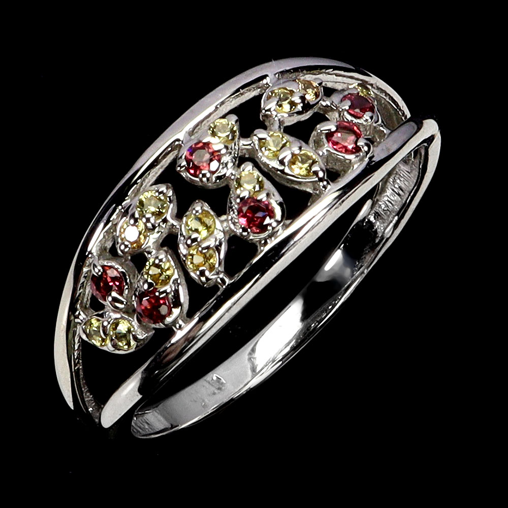 925 Sterling Silver Ring Round Rhodolite Garnet Sapphire Gemstone Jewelry Size 8