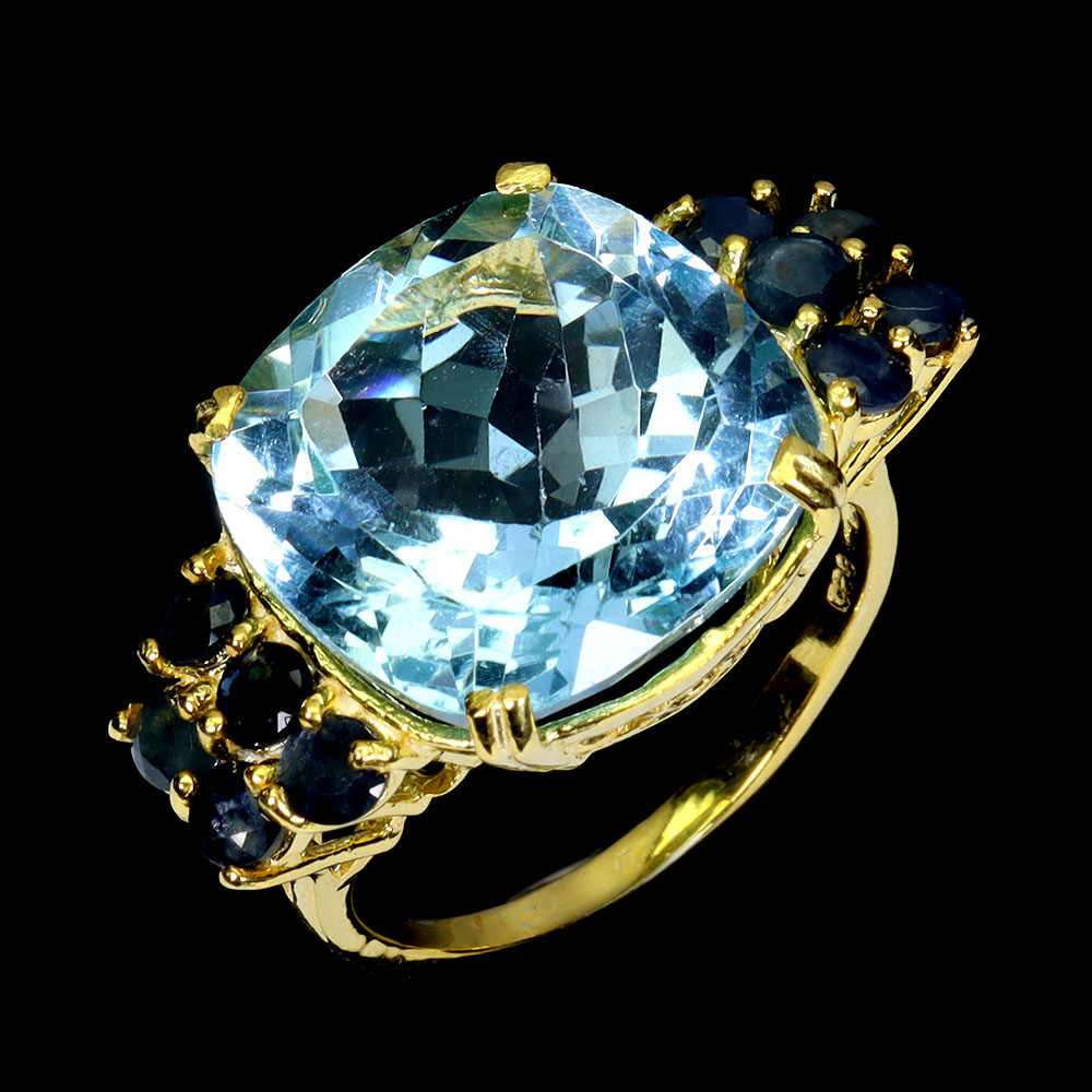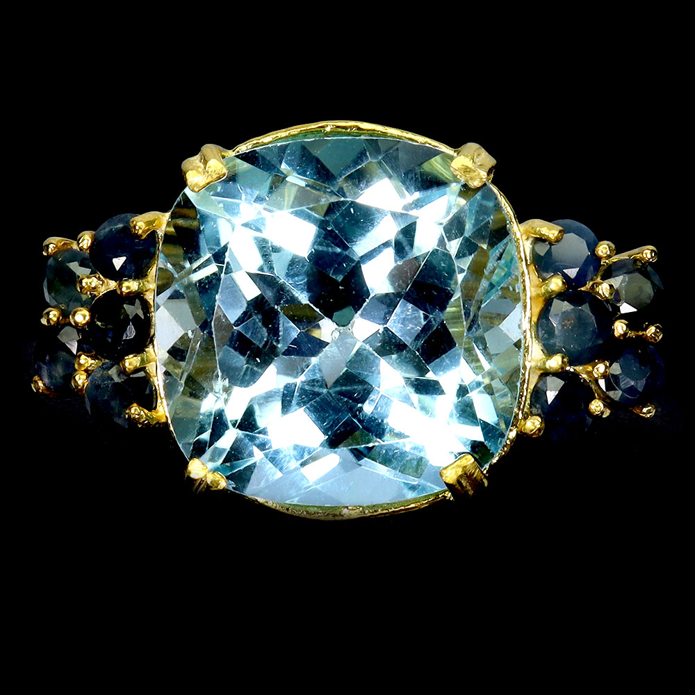 925 Sterling Silver Ring Cushion Swiss Blue Topaz 15mm Sapphire Gemstone Sz 7.5