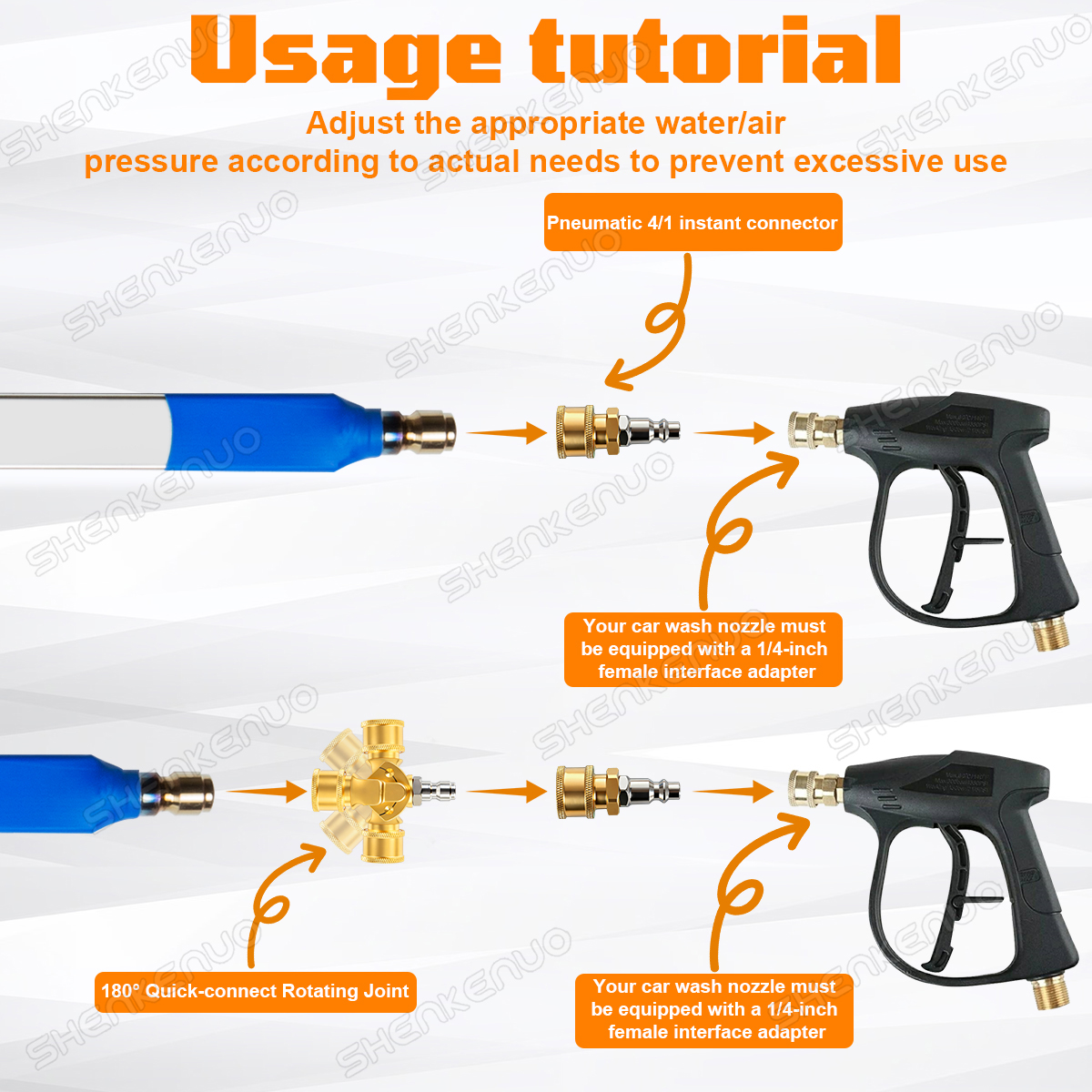 1.Your car wash nozzle must be equipped wlth a 1/4-inch femalo interface adaptet