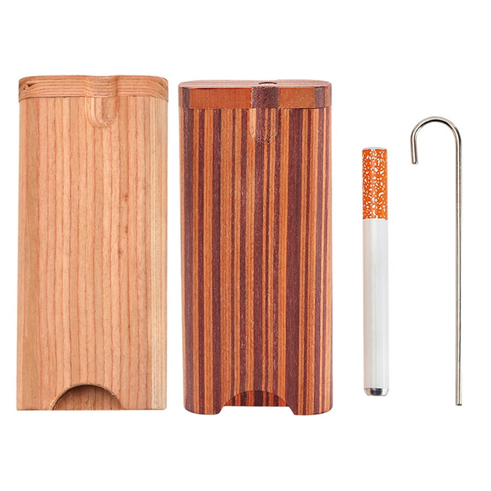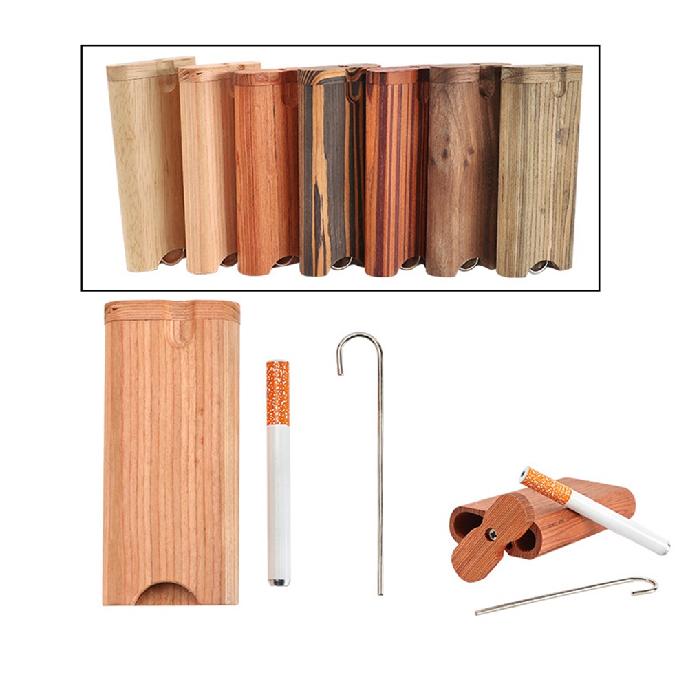 Wooden Dugout Box & Metal Hitter & Cleaning Rod Kit For Smoking Tobacco