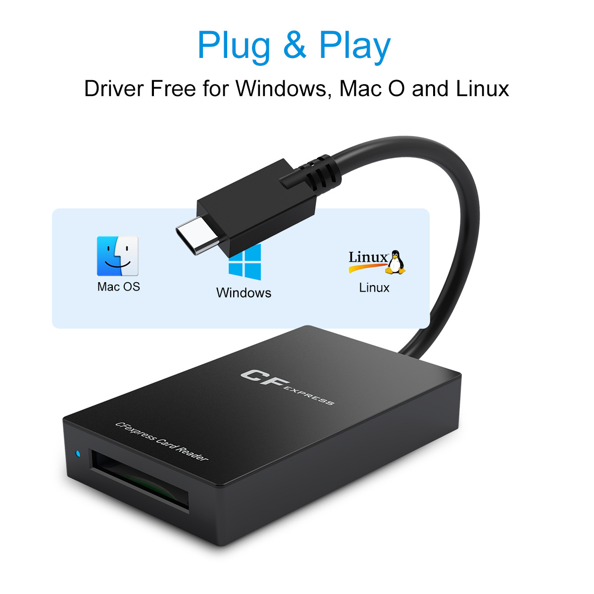 Support USB super speed/high speed/full speed operation, plug and play, no need to set up, import the video/file/photo in the CFexpress memory card to the computer, the transmission is stable, simple and fast.
