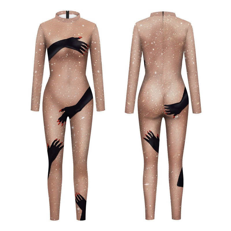 The vivid hands print on the jumpsuit is trendy and eye-catching, making you stand out in any crowd and showing a unique personality.