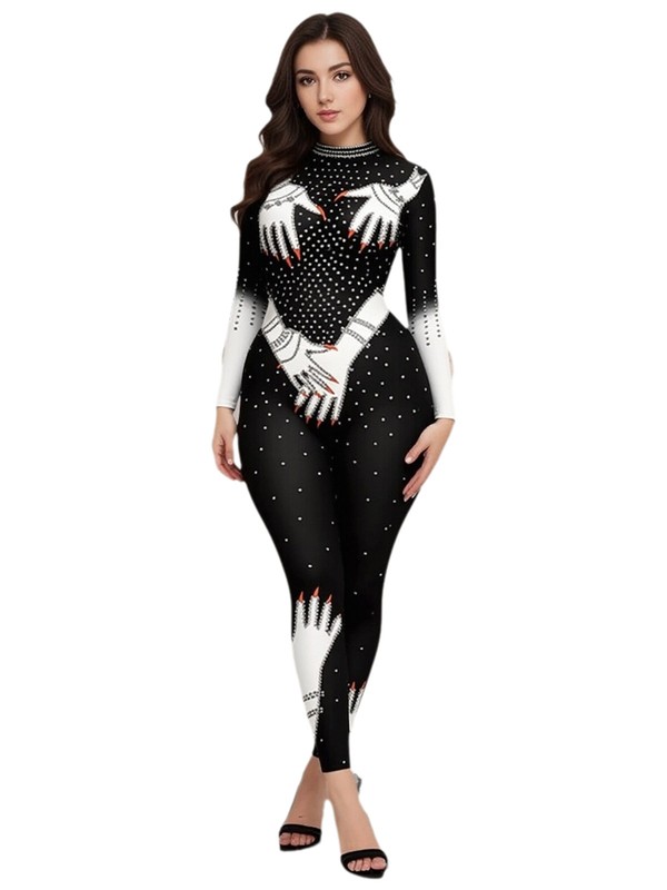The shiny rhinestone hands print adds a touch of glamour and uniqueness, making you stand out in any crowd and keeping you on-trend.