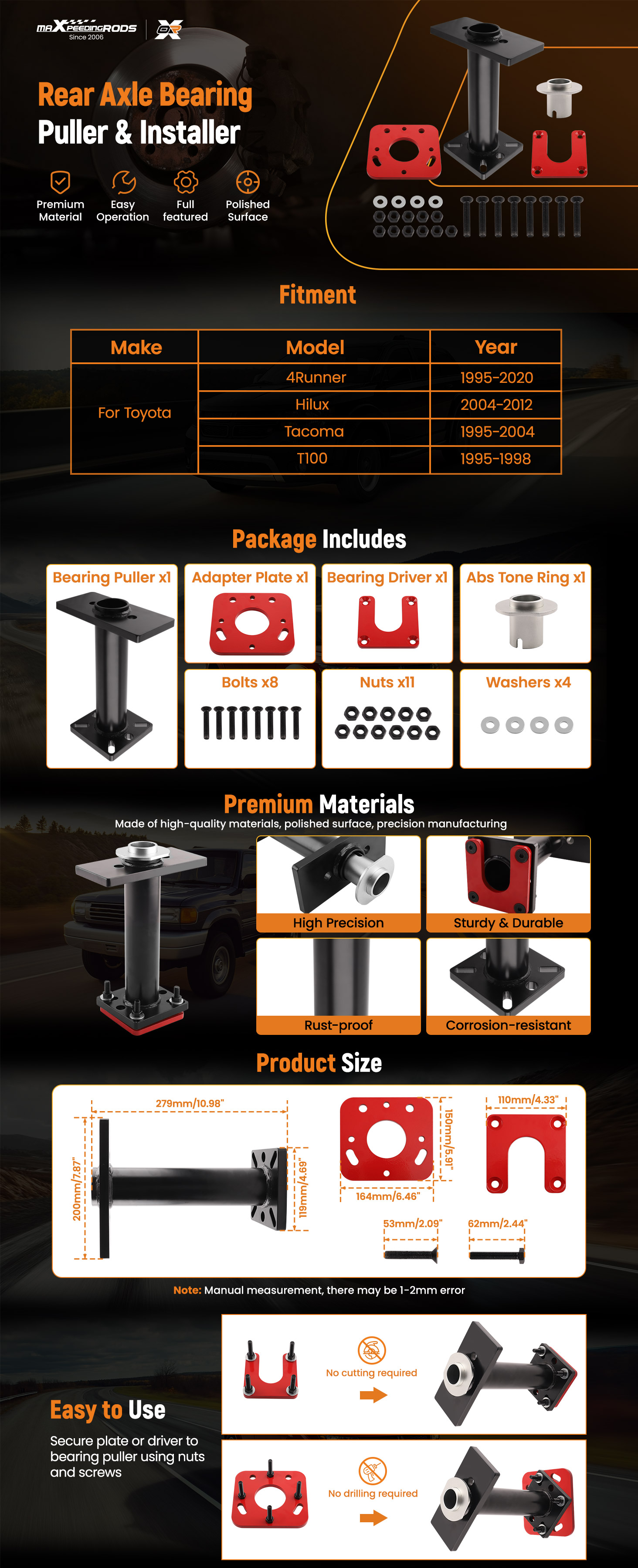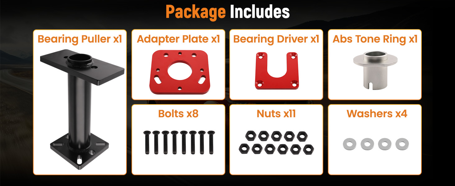 1 Set of Axle bearing puller, adapter plate, 40mm bearing driver and tone ring (as the picture show)
