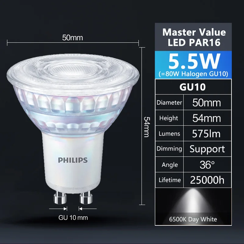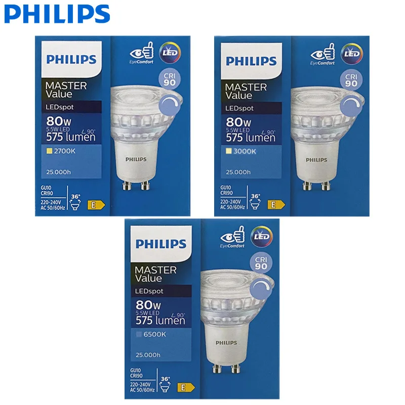 Philips GU10 PAR16 LED MASTER 5.5W 220-240V Bulb Dimmable 2700K 3000K 6500K White LED Spot Light Replace 80W Halogen Lamps