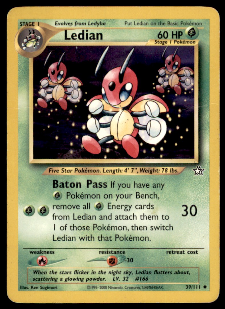 | 2000 Pokemon Neo Genesis Ledian English #39 Vintage |