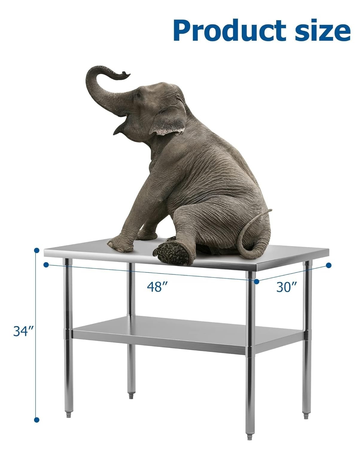 [ROBUST CONSTRUCTION] - This EcoExplorer stainless table can support up to 500 lbs on the top shelf and 370 lbs on the bottom, measuring 48 x 30 inches, providing a reliable work surface for all your tasks