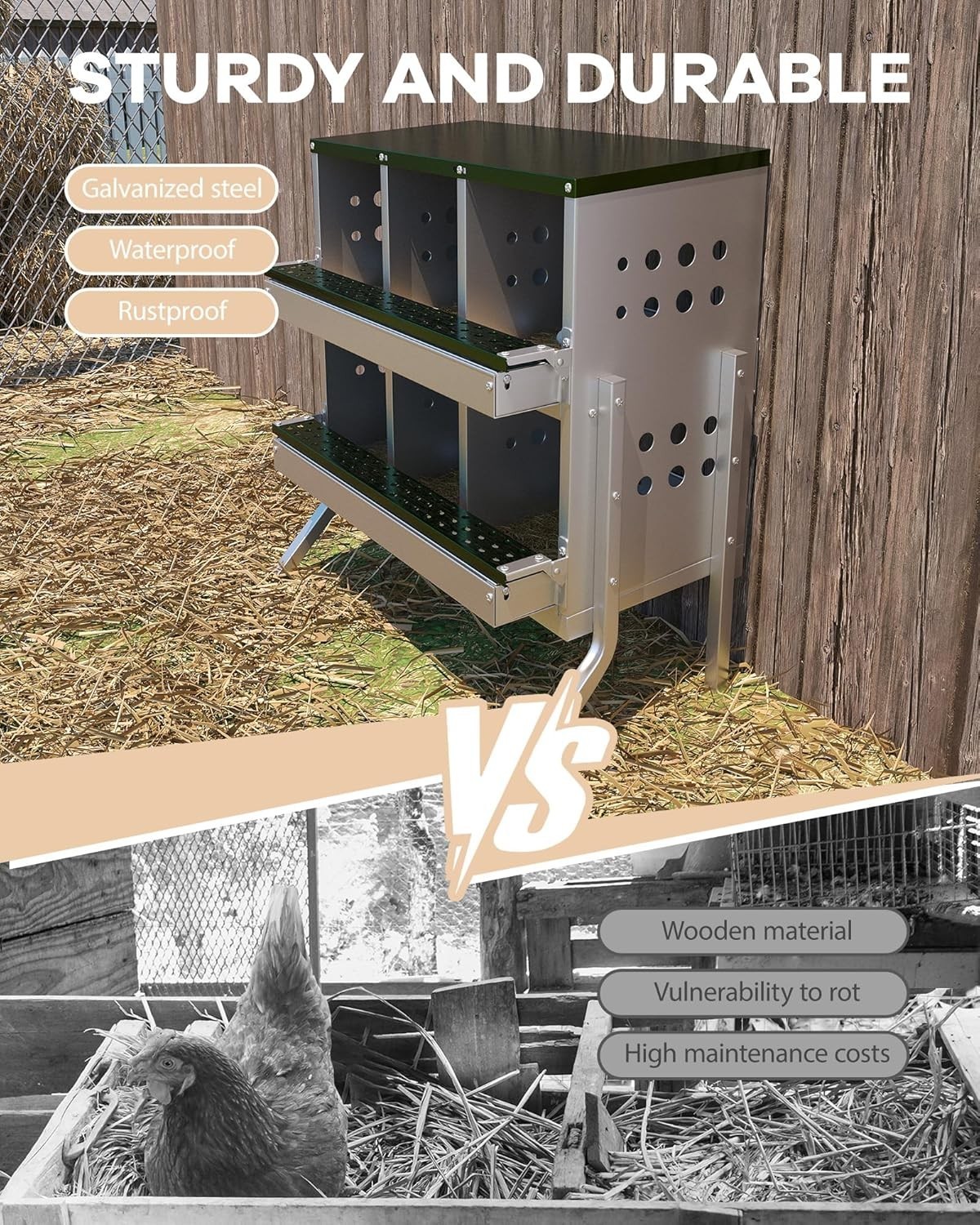 [Designed for Lasting] - Constructed from galvanized steel, this Hipicute nesting box for laying eggs is waterproof, rustproof, and built to last, guaranteeing reliable performance even in demanding barn environments