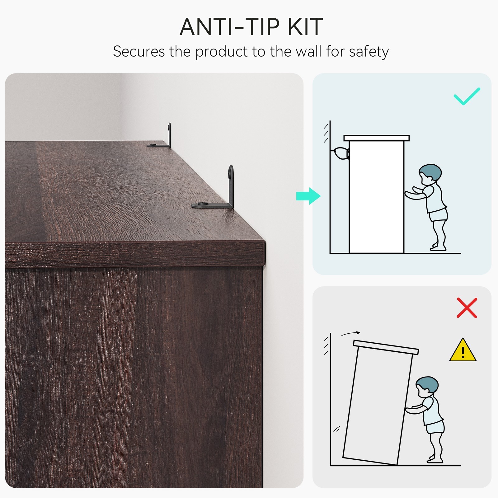 | Farmhouse StyleFeatures a distinctive rustic style that combines metal angle and wood materials, perfectly showcasing the charm of rustic farmhouse aesthetics. | Stable and DurableThe crossbars underneath each shelf are designed to increase the weight capacity to 45 pounds per shelf, preventing deformation and warping caused by heavy items to withstand the risk of long-term use. | Tipover Resistance DeviceThe package comes with two tip-over resistance devices. We suggest you use them after assembling the shelf to ensure the safety of your family. |