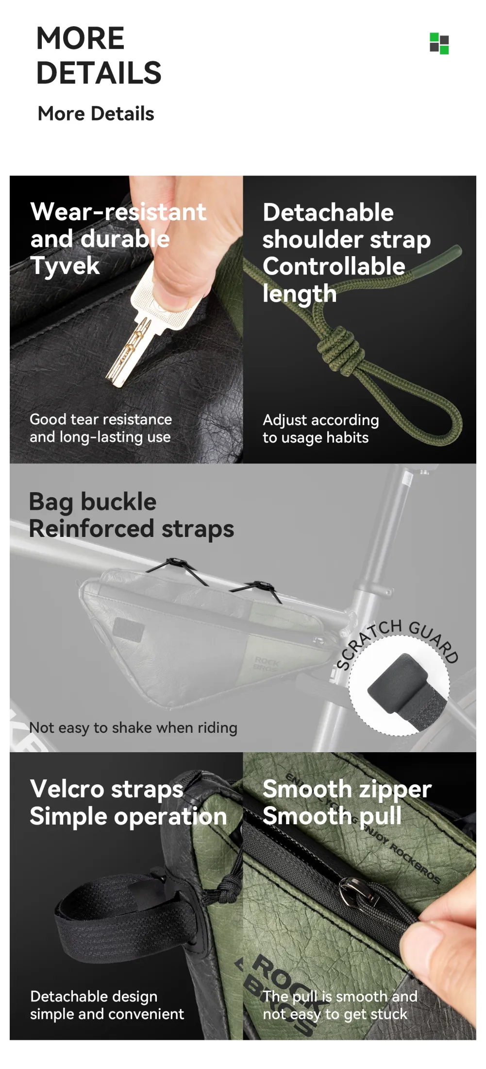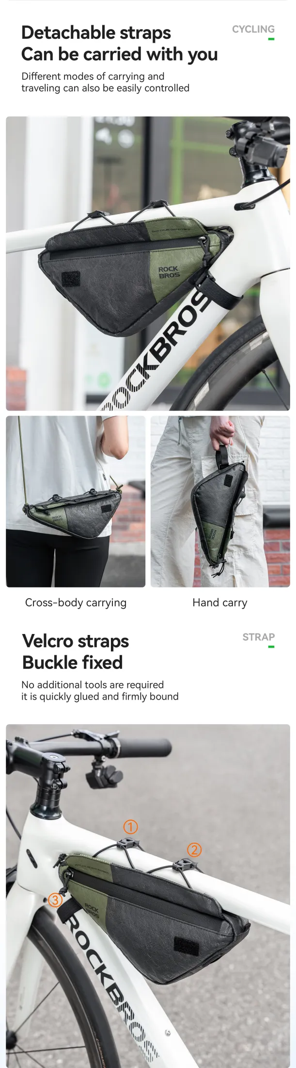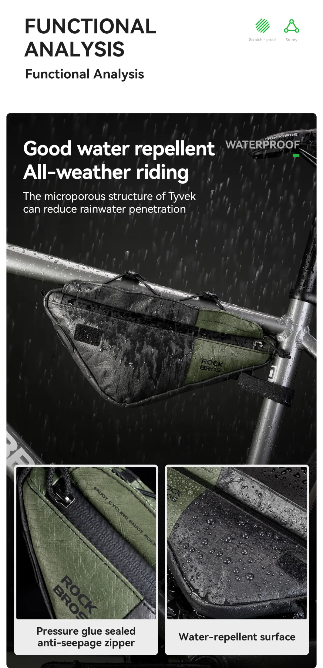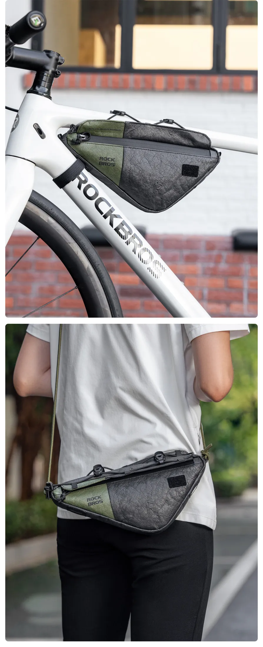 Product Information Brand:ROCKBROS Name:Tyvek series DB003 triangle bag Product Material:Tyvek Capacity≈0.7L Weight≈94±5g Applicable Models:Road bike/Mountain bike