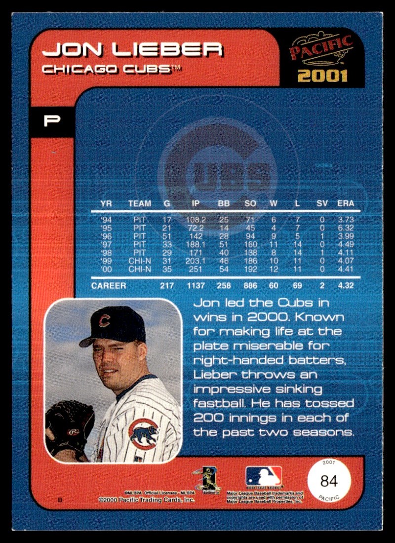 2001 Pacific Jon Lieber Chicago Cubs #84