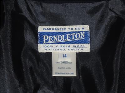 Authentic PENDLETON blazer in a size 14. Navy blue. One button with flap pockets at hips. Made mof Lambswool, fully lined. BRAND NEW WITH TAGS!! MSRP $188.00