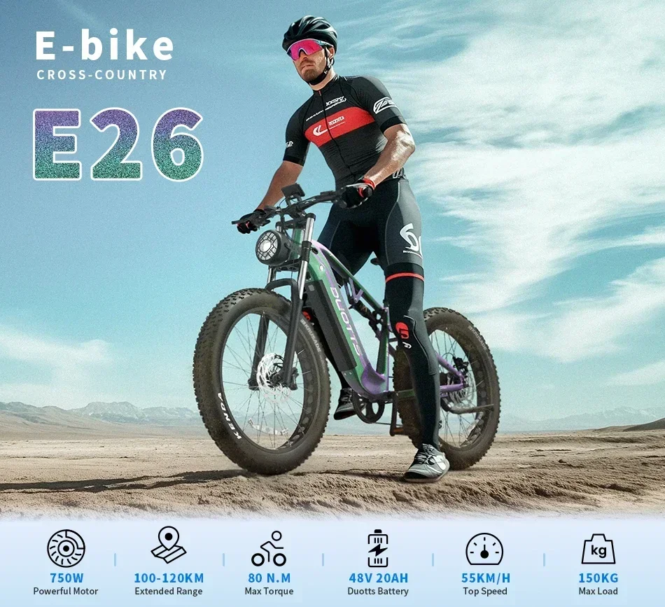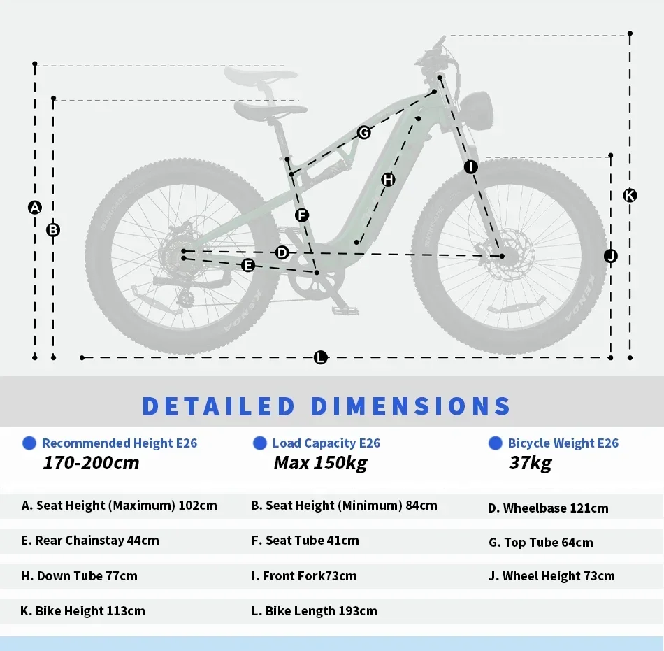 The E26 is equipped with high-performance power-cut brake levers, paired with TEETRO Yanhao hydraulic brakes featuring four pistons, ensuring a quick response in emergency situations. Its 180mm brake discs offer greater stopping power and heat dissipation, delivering stable and precise braking performance, especially at high speeds or on challenging terrain. This significantly enhances safety and control during rides.