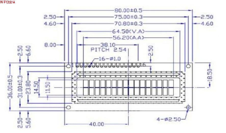 Visual Area: 65.00x16.00mm(SLC1602C1), 65.00x14.50mm(SLC1602C2),