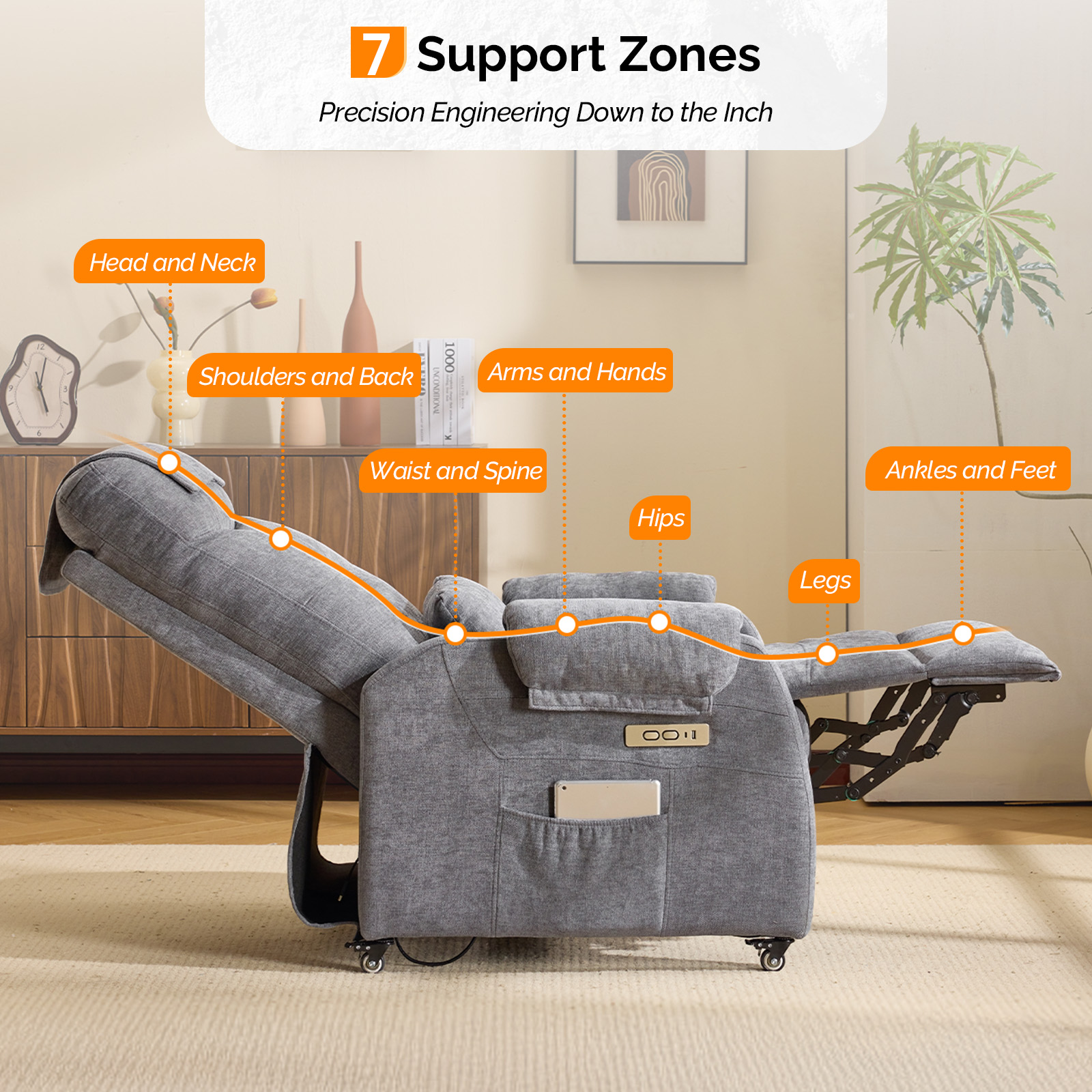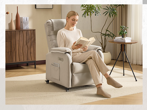【Ultimate Mobility with Locking Casters】Our reclining chair comes with four swivel casters, allowing you to effortlessly move it around your home. Unlike traditional chairs with fixed legs, this recliner can be easily relocated to your living room for movie nights or to your bedroom for a relaxing read. Worried about stability? The casters have locks to keep the chair securely in place.