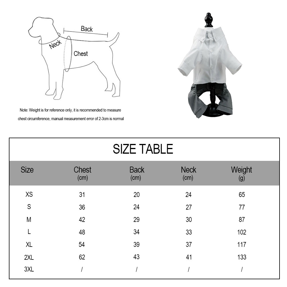 Features: The shirt is made of high-quality cotton, which can be matched with suits and vests or can be wear alone. The suit and vest can be match together make your pet look stylish and gentlemanly. Perfect for wedding party, Halloween, and any parties. Humanized design with the button of the cloth,makes your pet more lovely,fashion and difference. The nice workmanship and suit style will make your pet become more attractive,and make you closer to your sweet pets. It's a great gift for your pet, it will like this clothes very much. Specifications: Material: Cotton Size: As the picture shown Color: As the picture shown Note: There could be some slight differences in the color tone of the pictures and the actual item. Please allow 1-2mm differs due to manual measurement, thanks. Package Included: 1Pc x Pet Jumpsuit No Retail Box,Packing Safely in Bubble Bag.