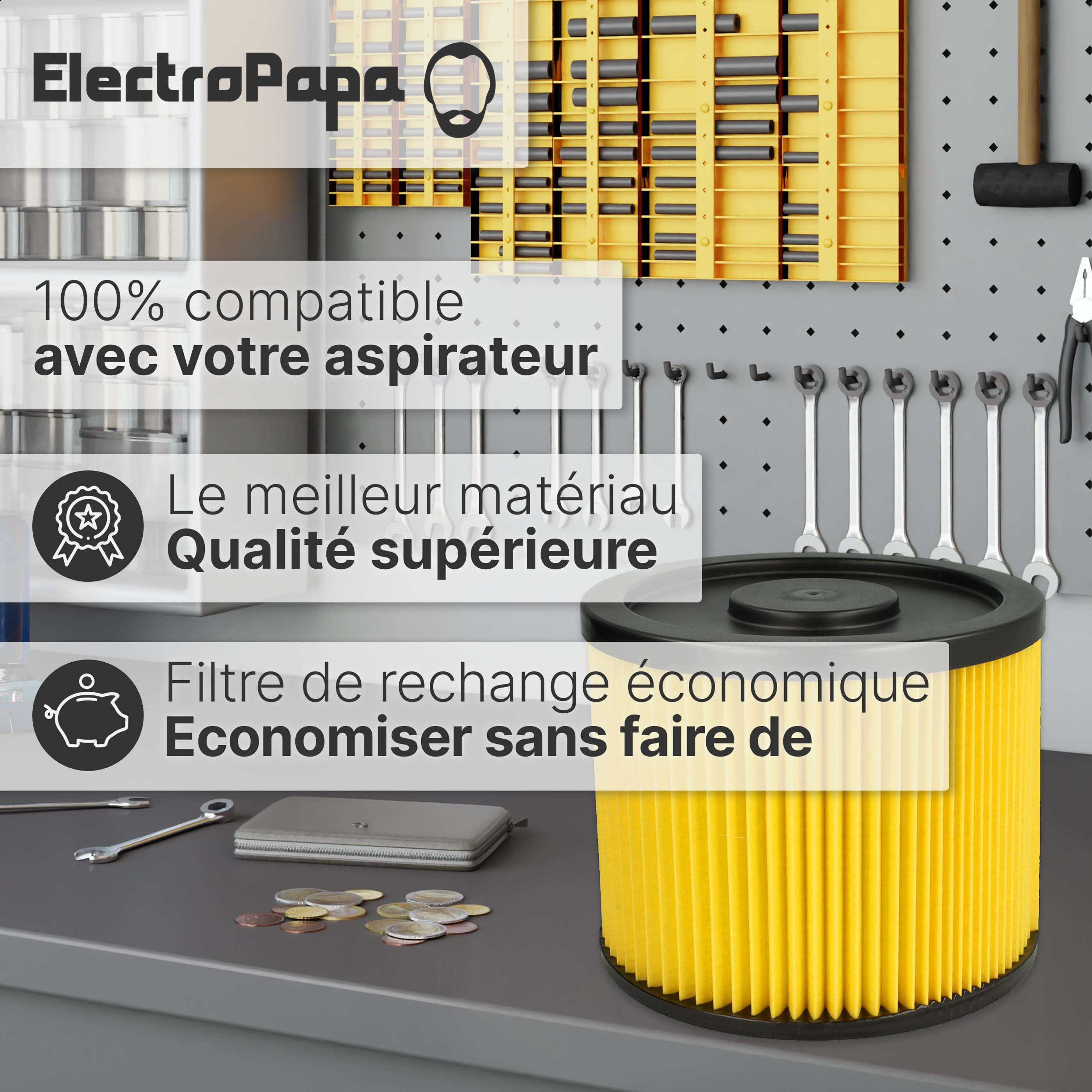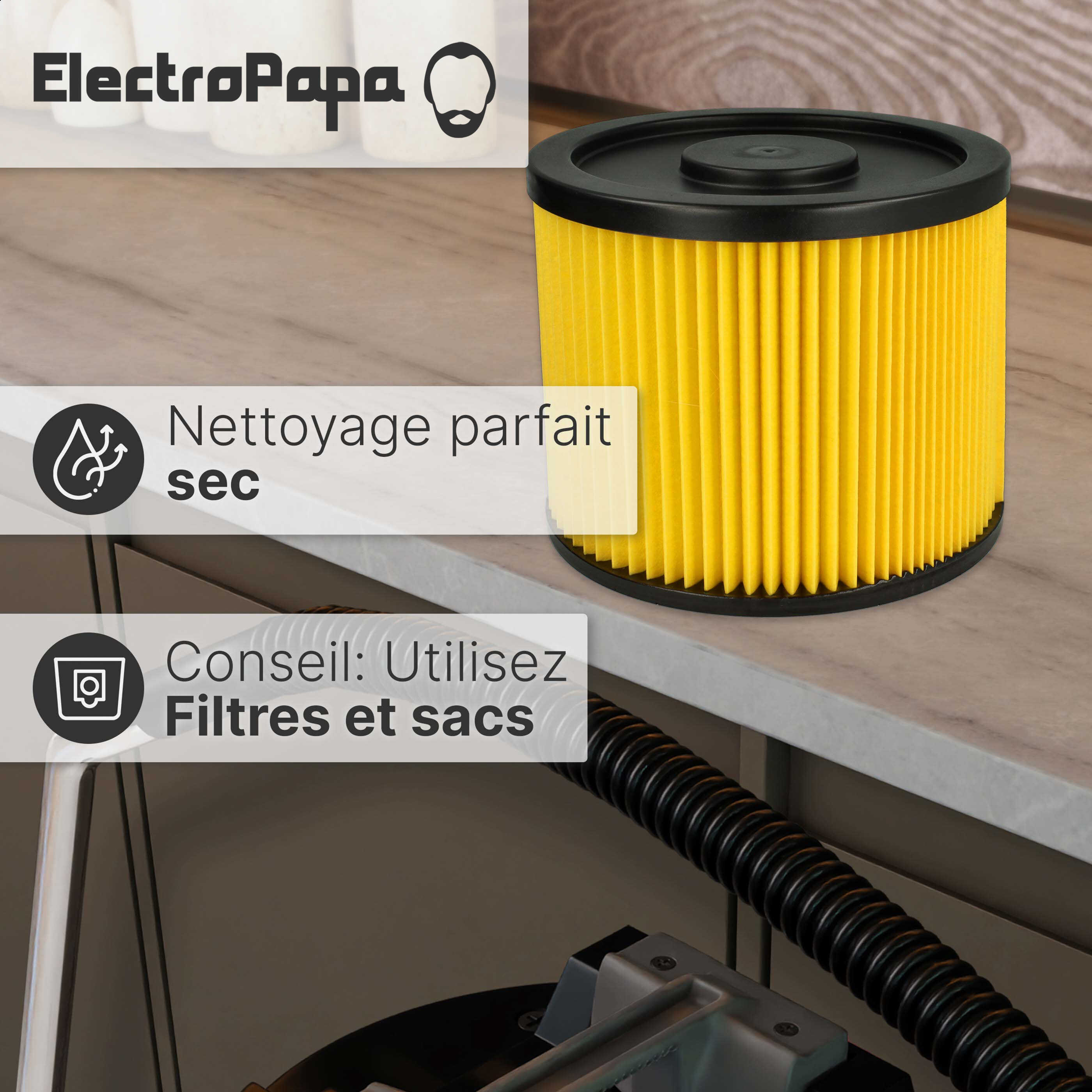 - Filtre de rechange idéal pour aspirer les poussières et autres particules grossières de saleté