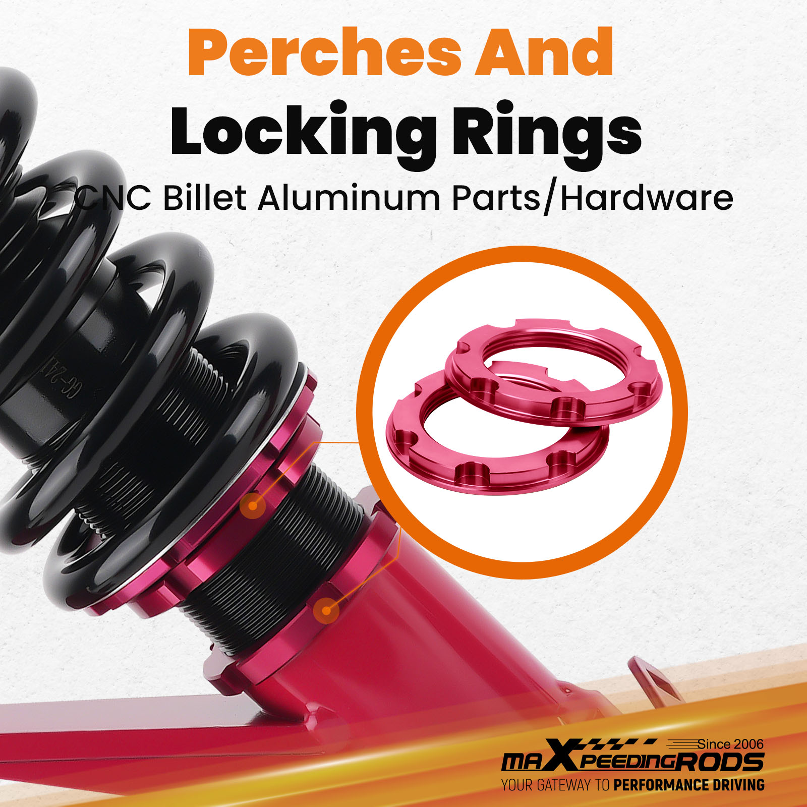 - Most pieces in our Coilover systems, including mounts, collars and spring perches, are designed from 6061-T6 Billet Aluminum resulting in lightweight, durable and rust resistant components.