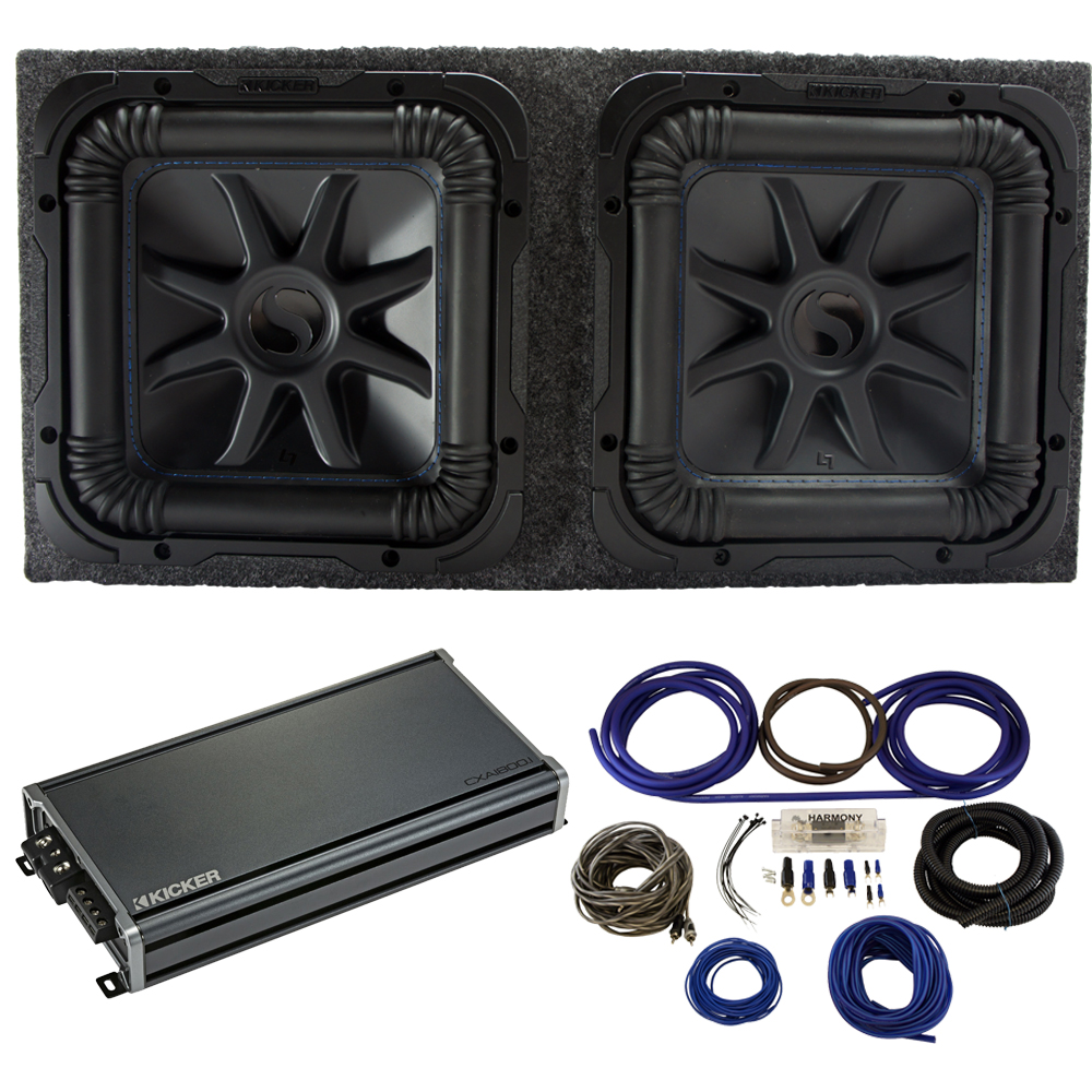 Kicker 44L7S152 15" Subwoofers with Sealed Sub Box, 46CXA18001 Amp & Install Kit