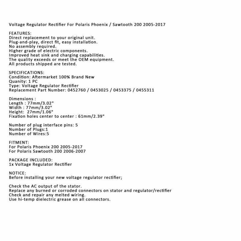 Voltage Regulator Rectifier For Polaris Phoenix / Sawtooth 200 2005-2017