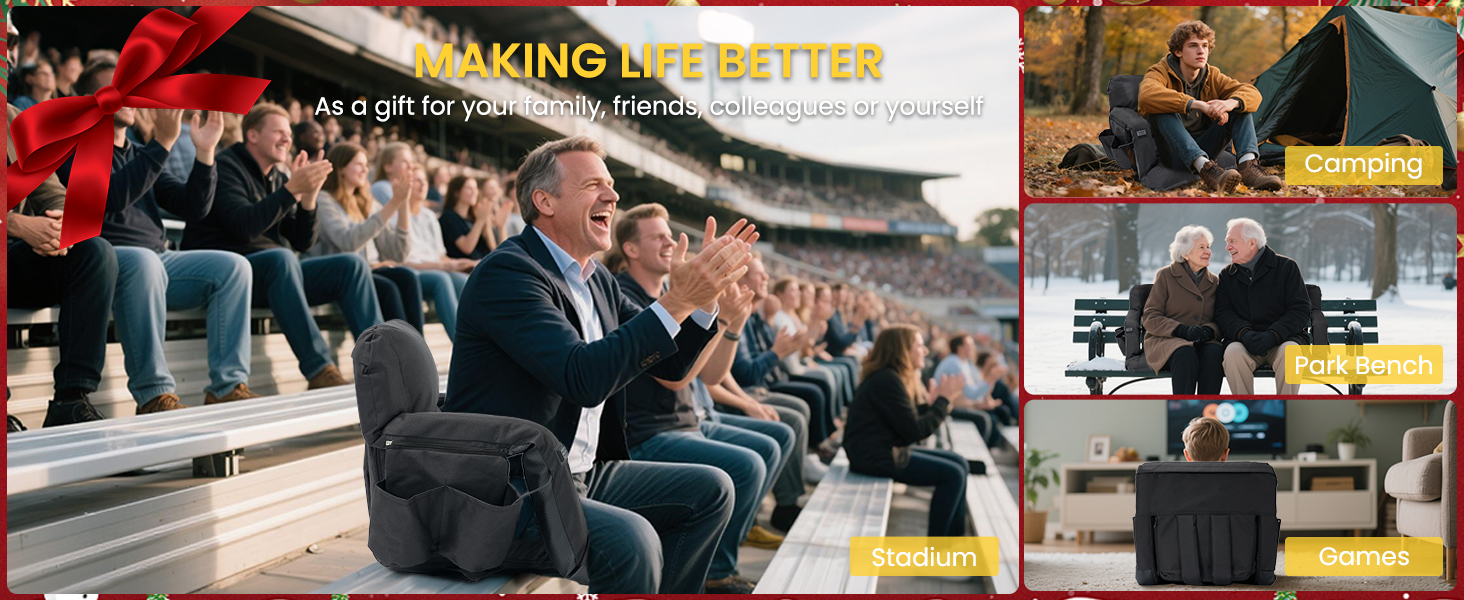𝐏𝐨𝐫𝐭𝐚𝐛𝐥𝐞 𝐚𝐧𝐝 𝐌𝐮𝐥𝐭𝐢-𝐏𝐮𝐫𝐩𝐨𝐬𝐞: Our stadium seating for bleachers with multiple pockets where you can conveniently store your bottles, snacks, and personal items. With 2 shoulder straps, it can be easily carried like a backpack. This means you can take it anywhere you go.If you encounter any issues with our stadium seats, please reach out to us through the order details page