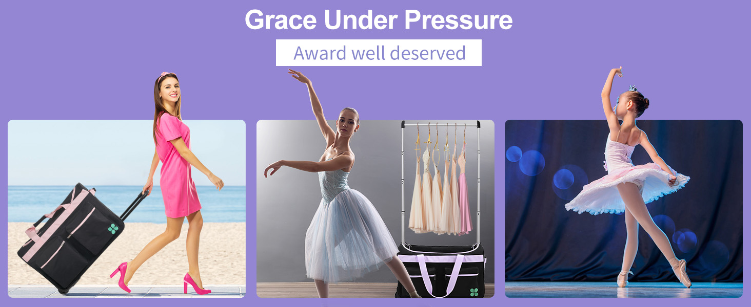 EASY TO USE - This dance bag is a breeze to set up with no tools required. The two durable wheels design and strong hand straps ensure easy and worry free transportation. Bag is water resistant to keep costumes and supplies dry. We make these to last, look good, and serve well throughout your dancer's career.
