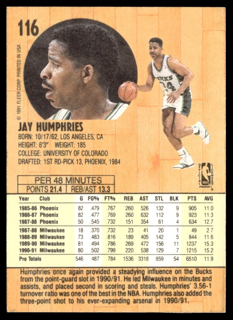 1991-92 Fleer Jay Humphries Milwaukee Bucks #116