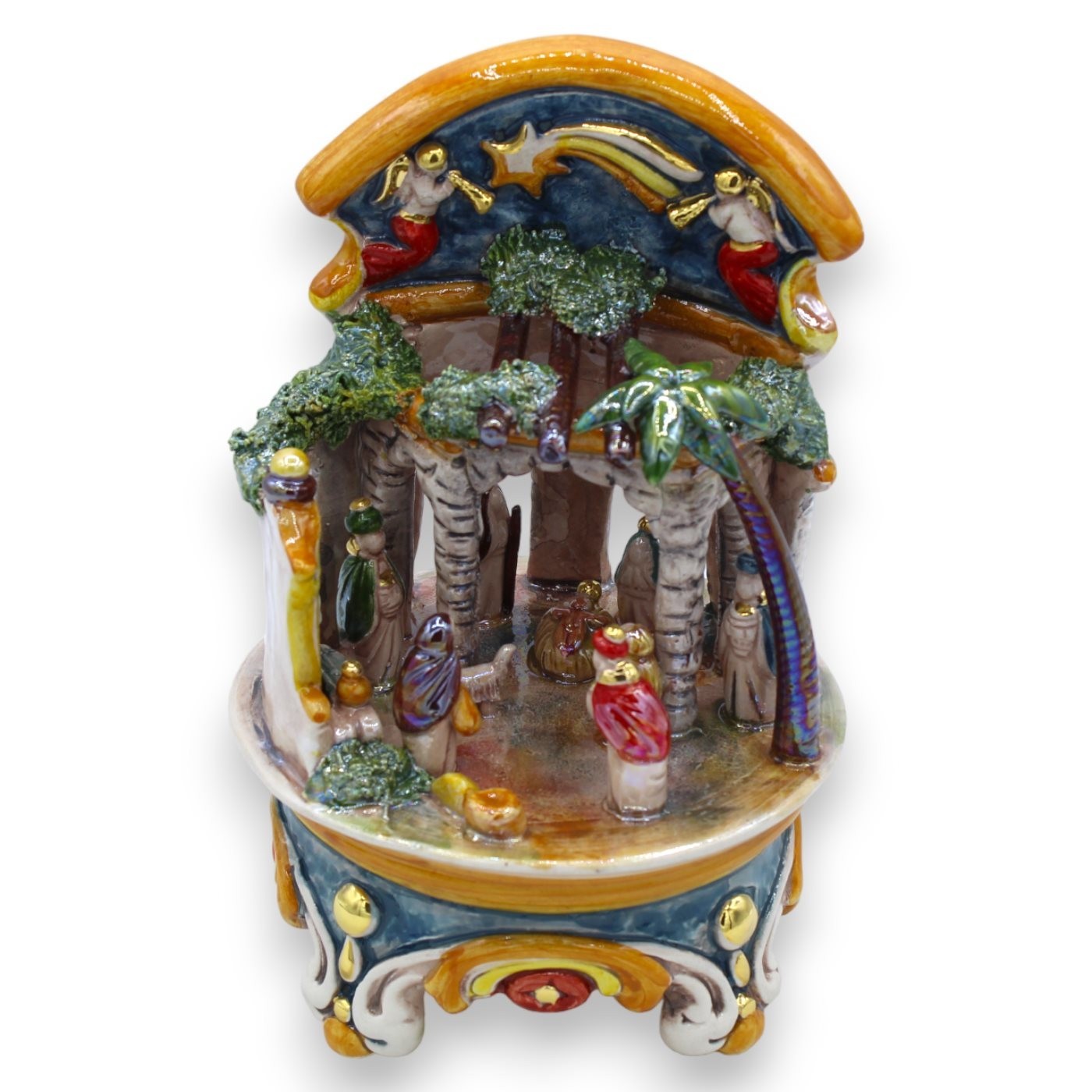 Scène de la nativité en céramique Caltagirone en céramique H 20 cm Env. Polychromatique, détails de l'émail d'or doré 24k et mère de perle Code d'article: SBANF0090 Splendide scène de nativité artisanale faite et décorée à la main, par nos maîtres artisans. Nales émaillé dans la mère de la perle et les décorations terminées en or 24k Sequin. Mesures: hauteur: 20 cm, diamètre 12,5 cm (environ). Scène de la nativité qui décorera tous les coins de votre maison avec goût et rendra votre Noël encore plus précieux et magique. Être un artisanat entièrement fabriqué et décoré, s'il y avait de petites imperfections, Ceux-ci indiquent l'originalité du produit. Le certificat de garantie à main est fourni. Si vous préférez une boîte cadeau, communiquez-la simplement au moment de la commande.Toutes nos céramiques mettent le feu à la signature.